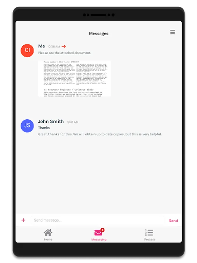 Easily upload necessary information, sign relevant documents, and communicate with your case handler around the clock. Send messages and photos at your convenience, and receive messages from your case handler, all neatly organised within the app for permanent record-keeping.