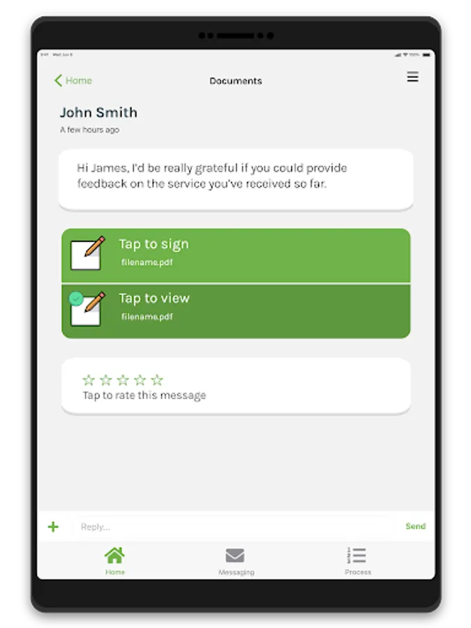 Communicate with Honey Legal 24 hours a day, by sending messages and photos if you need to, whenever you like. We can also send messages to you which will be kept neatly within the app, recording everything permanently.