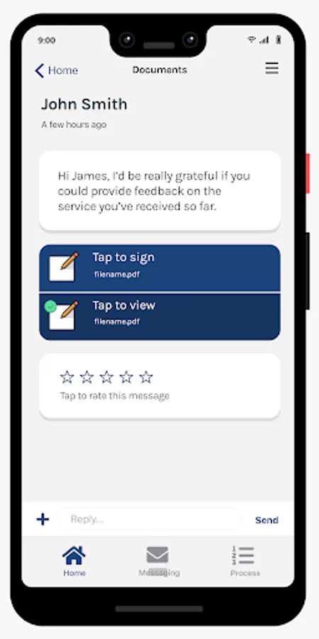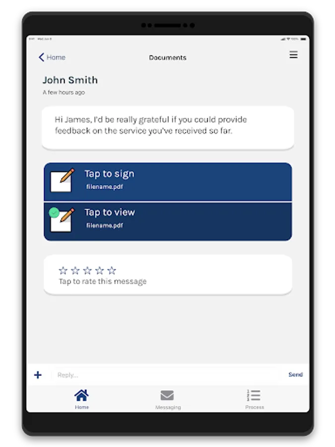 •View, complete and sign forms, or documents, returning them securely
