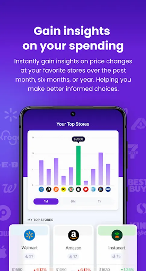 Unflation gives you realtime vision into inflation’s impact on their pocketbooks. It highlights how your spending in stores and individual items is changing. You can see their spend at stores like Amazon, Kroger, and Walgreens over the last year as well as price changes on your most purchased produts.