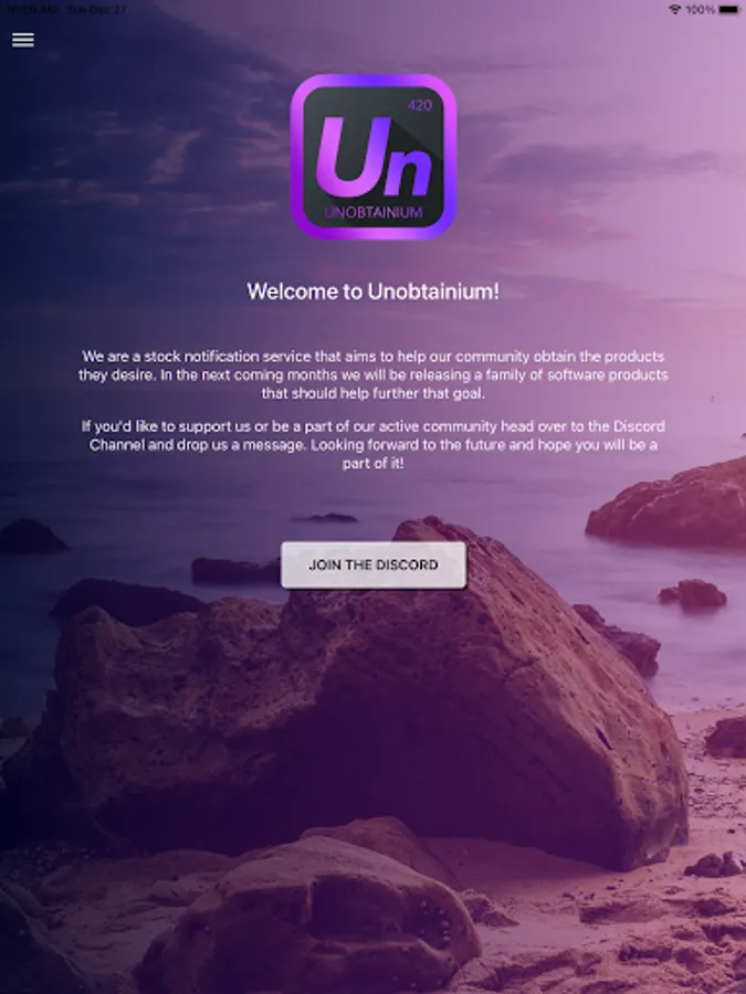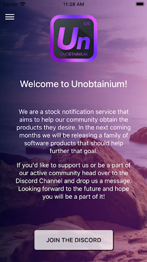 Welcome to Unobtainium! We are a stock notification service that aims to help our community obtain the products they desire. In the next coming months, we will be releasing a family of software products that should help further that goal. If you'd like to support us or be a part of our active community head over to the Discord Channel and drop us a message. Looking forward to the future and hope you will be a part of it!
