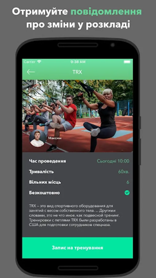 Receive notice of changes in the schedule - canceling workout, changing date or coach.