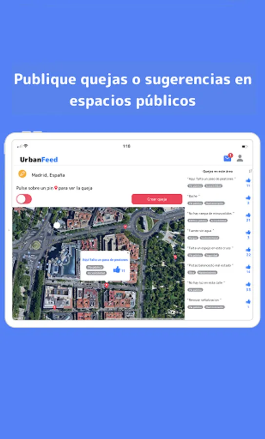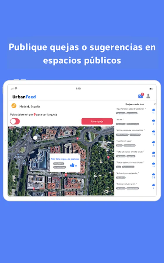1. Tools to post and upvote complaints or suggestions on public spaces.