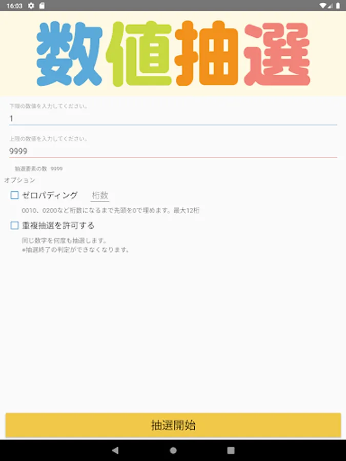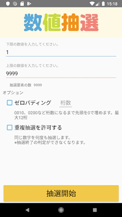 抽選数字を0で埋めるか、重複の数値を許可するかなど、お好みにあわせてカスタムできます。