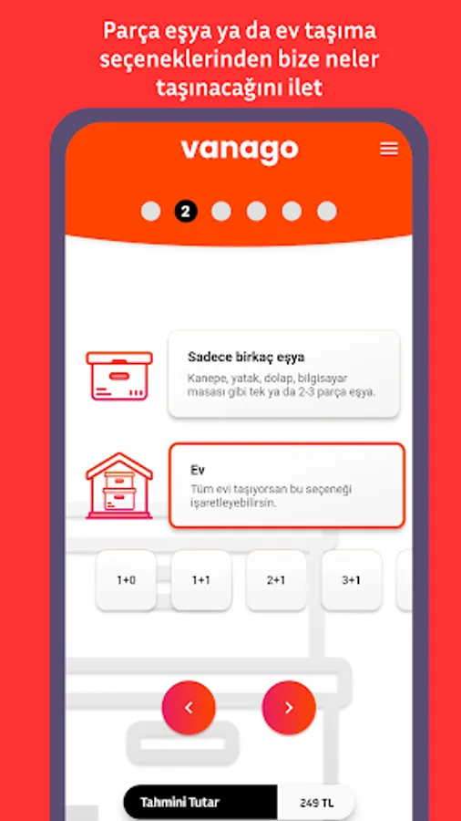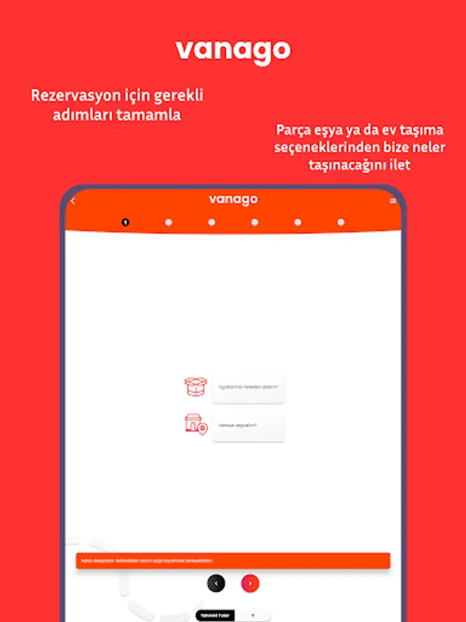 With Vanago, you can carry out the steps you see in the application, whether you want to carry out partial goods or all house moving operations.