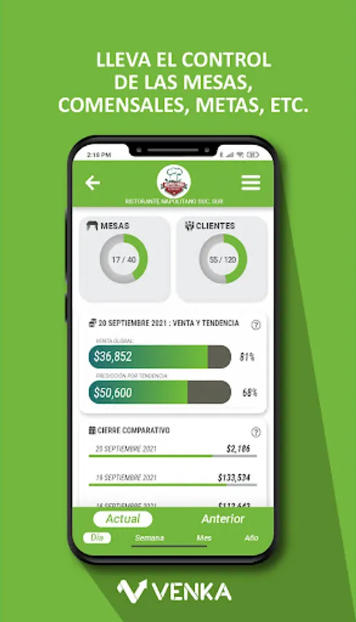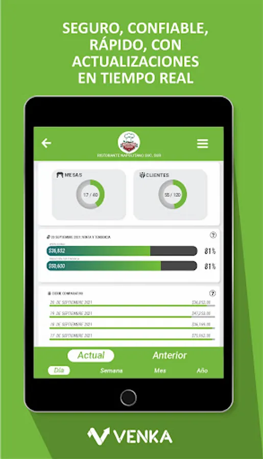 Monitor the sales of your restaurant or your food business in real time. Compare daily, weekly, monthly and annual sales statistics with details by product type or payment methods. Set goals to measure the performance of your business.