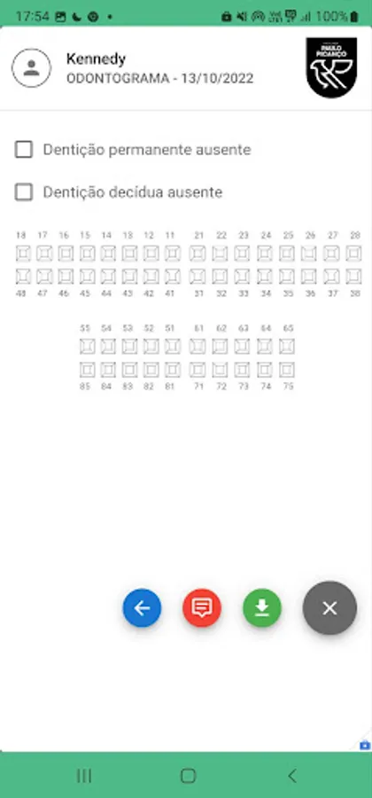 Application developed to help the student fill in the odontogram and treatment plan, at the end of the process, a PDF report will be generated with all the information fed by the student.