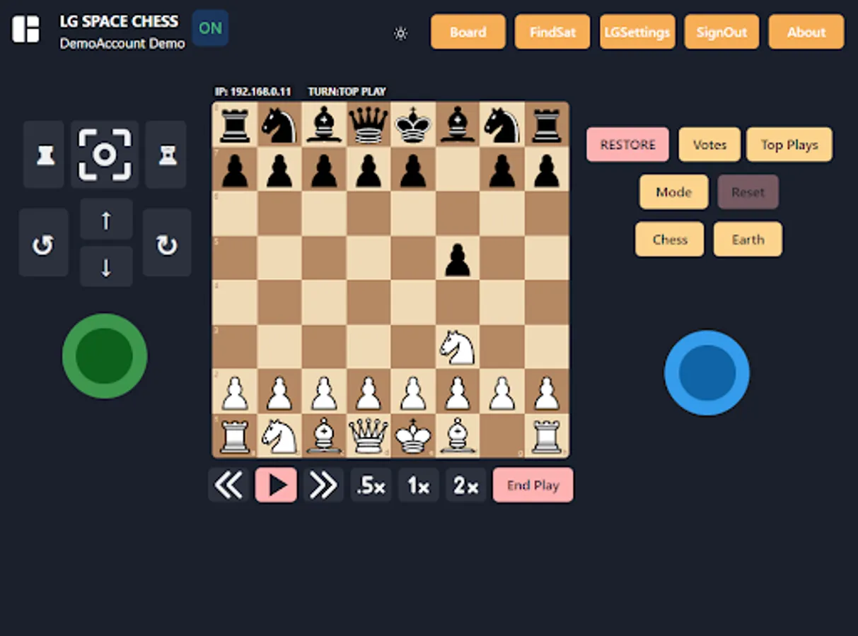 The basic idea is to use the Liquid Galaxy cluster to visualize a world chess game that will happen with people