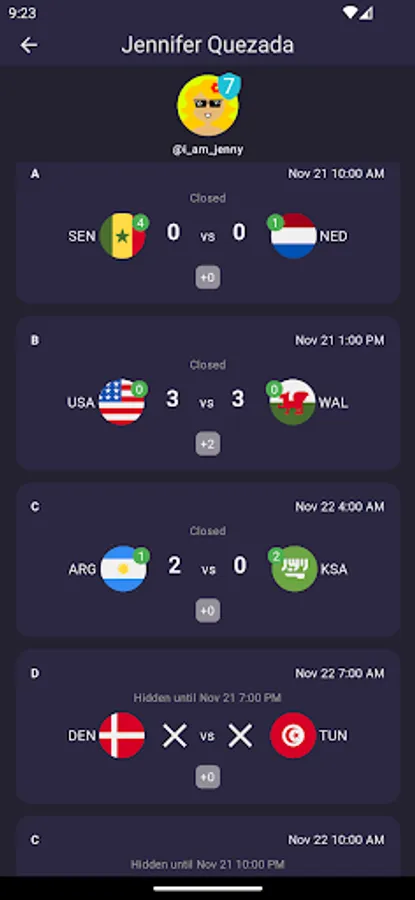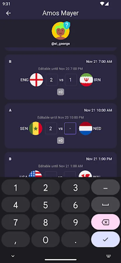 Predictions for individual matches can be added or edited up to 12 hours before the start of each match. After this time, predictions can no longer be modified and are visible to all other participants in the group.