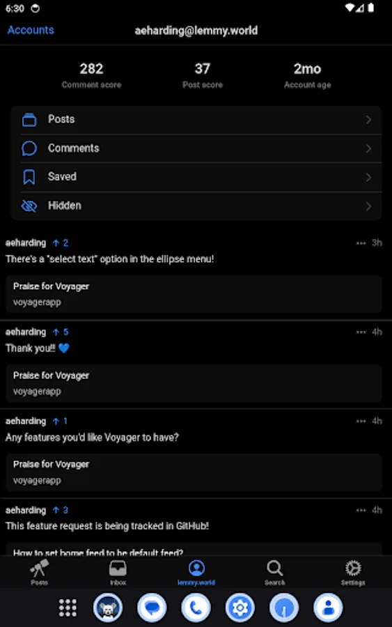 Voyager is a free and open source client for Lemmy. Voyager respects your privacy: no trackers and no advertisements.