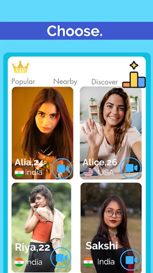 Video Call Feature: Users can have face-to-face conversations with their matches through in-app video calls.