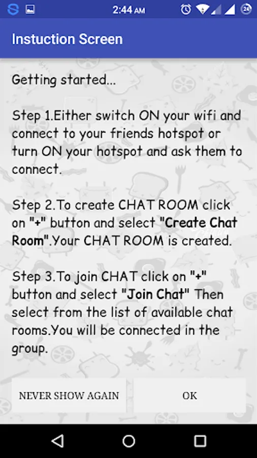 Chit Chat is an offline chatting app which helps you to connect to your friends in any place at any time.