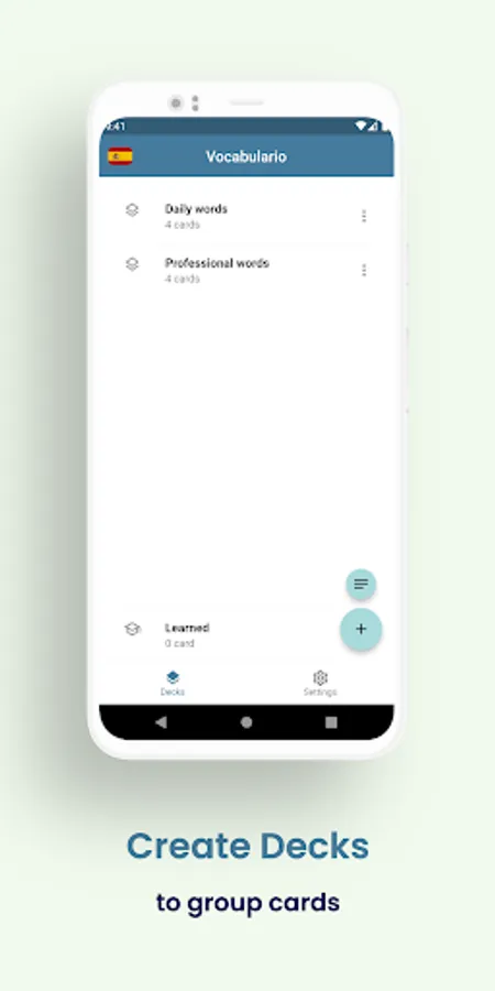 You can create decks to group word cards. The decks keep the cards together, depending on the context you set up.