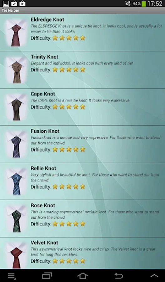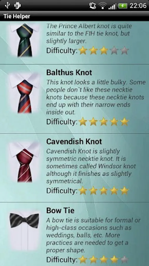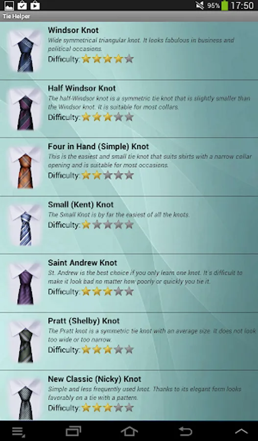 With our app you will find how to tie a tie with 33 (!!!) different ways: