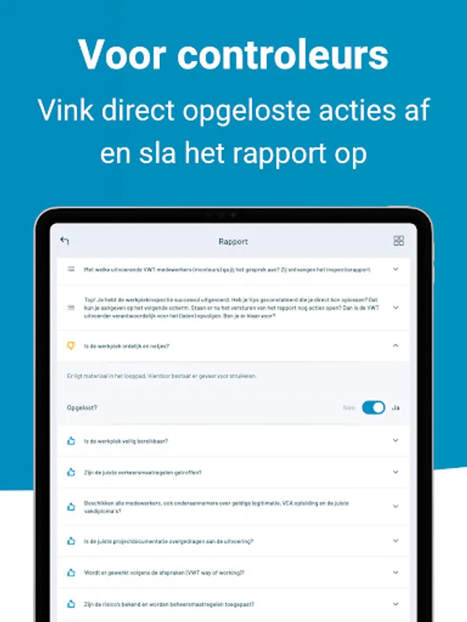 The inspection and test app provides digital support for performing checks. By having our work checked by ourselves and by others, we learn more every day and are able to continuously improve. In this way we can do our work even better every day.