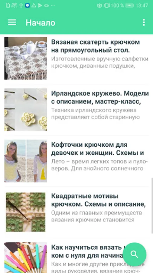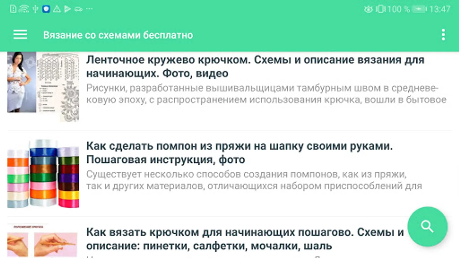 Crochet, creativity knows no bounds. It is enough to take a thread and a hook, and then everything is subject only to imagination. Our app will help you discover the world of knitting and your hidden talents! Download the app and enjoy!