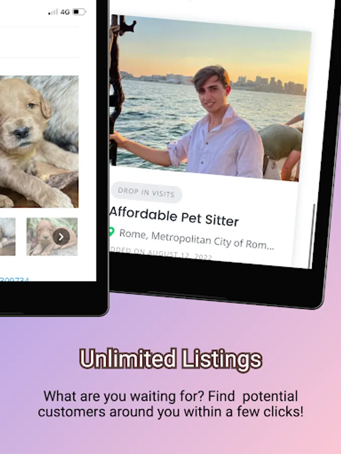 WannaPet is the only app that allows people to connect with Pet Dealers, Pet Sitters, and Dog Trainers from all over the world.