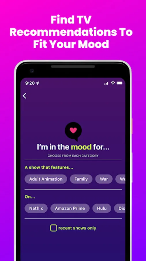 - Discover new shows by genre, streaming service, category, or even the mood you’re in.