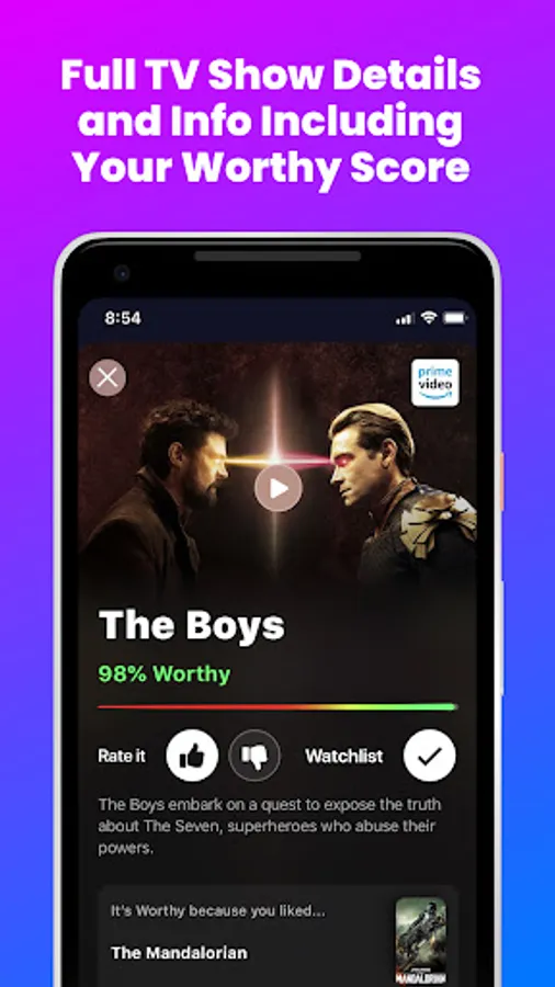 Watchworthy is the ultimate streaming TV guide and listings app, complete with custom watchlists and personal TV recommendations based on votes from real fans like you. Find TV shows you’ll love without wasting time on TV shows you won’t. Easily find what to watch and find where to watch with Watchworthy!