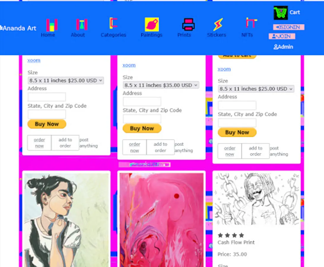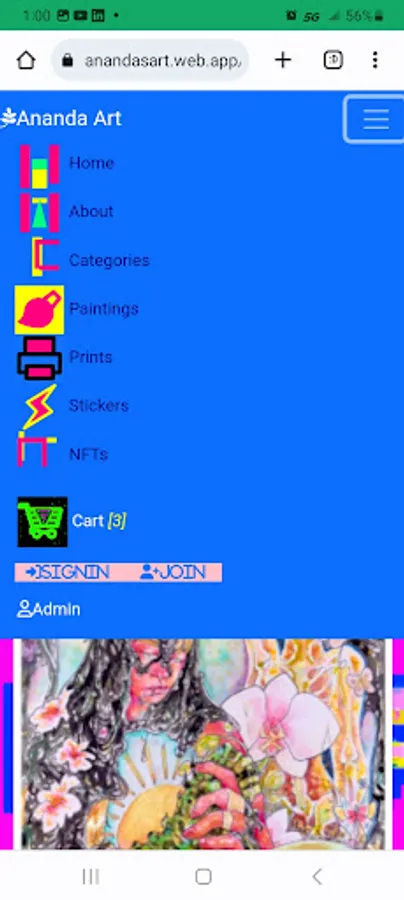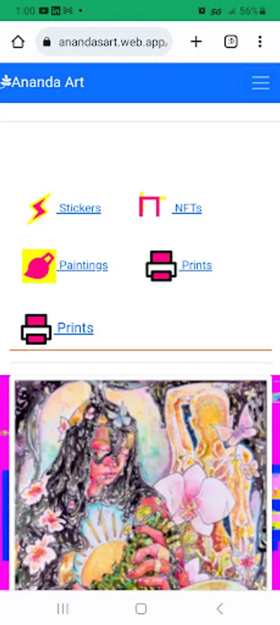 Boston Artist Ananda app gallery for Prints, Paintings, Stickers, NFT Gateway, Donate now and Event updates.