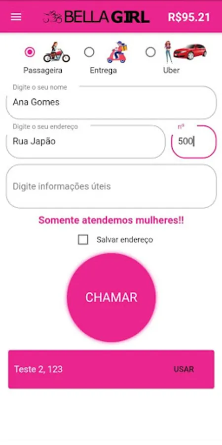 We serve in Passos-MG, we are a group of female drivers and we provide Motorcycle and Car service, download our app, you will like it!