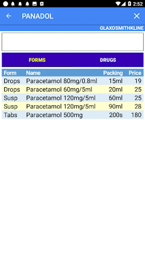 ☆ User can see available forms of a Brand, like tablets, syrup, injection, infusion, drops & suspension.