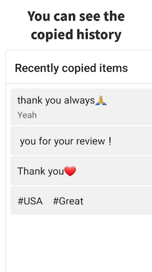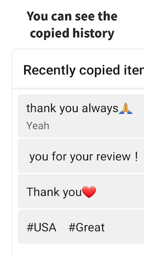 You can view a list of recently copied texts.