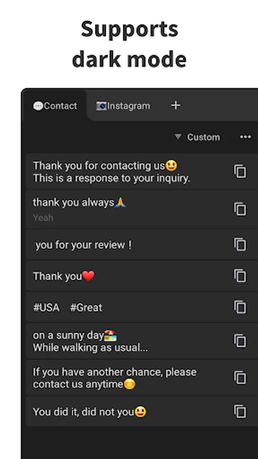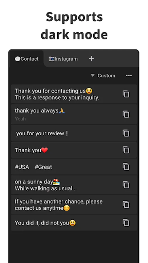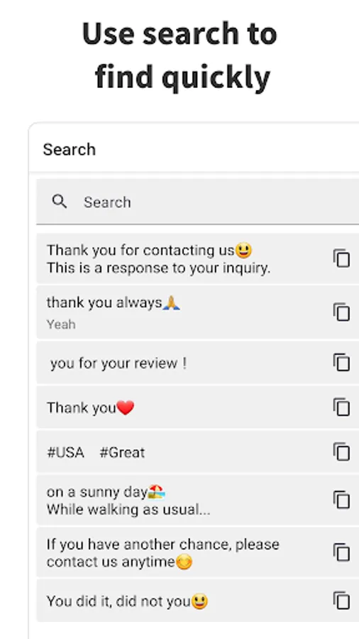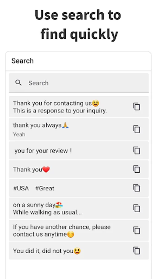 You can quickly copy any text you've registered.