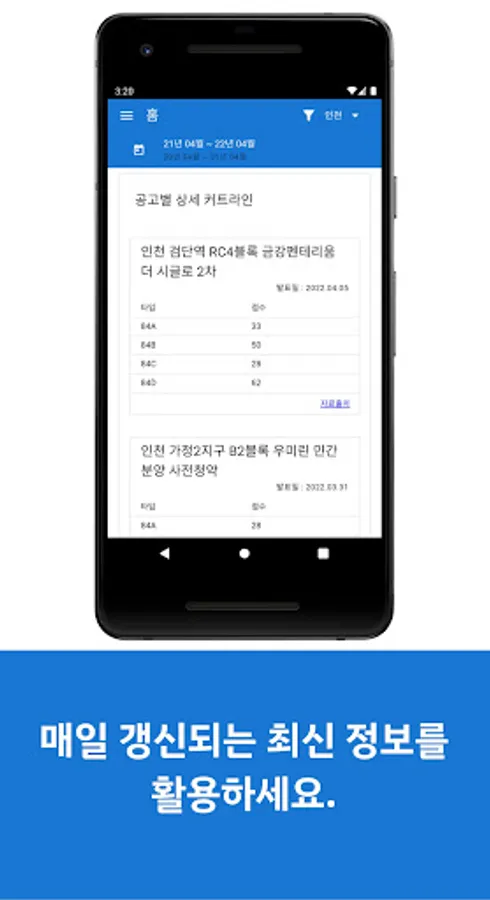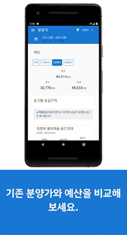 4. Provision of sales price statistics for public announcements subject to special supply by region: Collect statistics on sales prices of public announcements provided on the websites of Seoul City Hall and Gyeonggi Provincial Office and provide them by region. Through this, users can identify the trend of pre-sale prices in a specific area and evaluate the possibility of pre-sale by comparing it with their own budget.