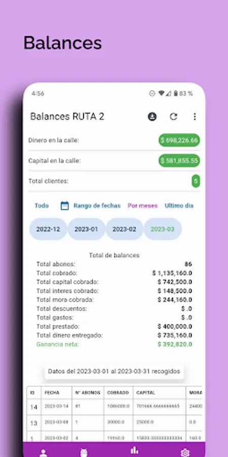 -See total loans, expenses, collection of the month