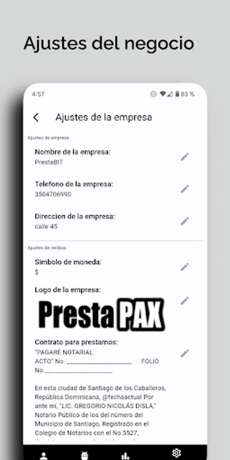 -Configure the name, address and telephone number of the company