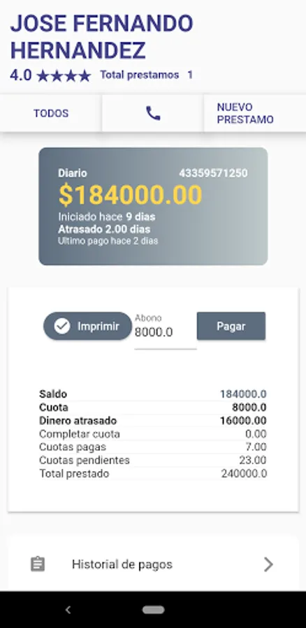 Loans of modality, Daily, Weekly, Biweekly, Monthly, Fixed date, Personalized (every two days, every 6 days etc.) can be registered.