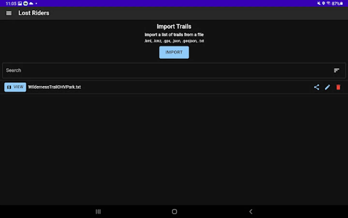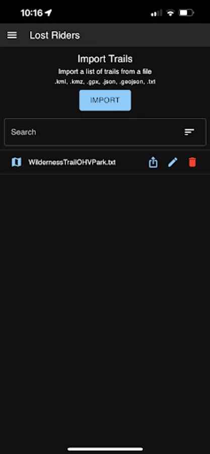 - Import trails through various formats (.kml, .kmz, .geojson, etc.)