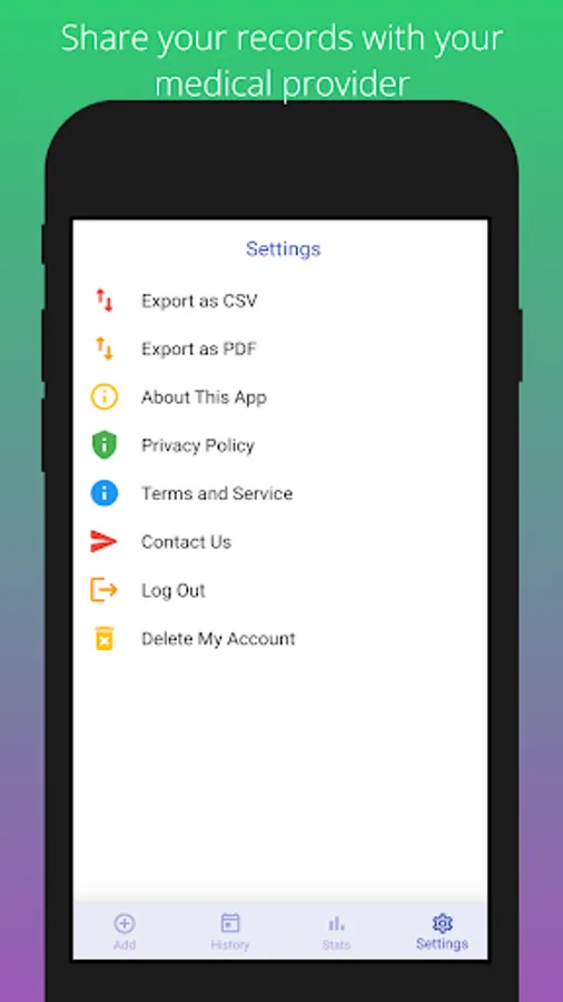 Share your data with your medical provider via email or PDF easily!