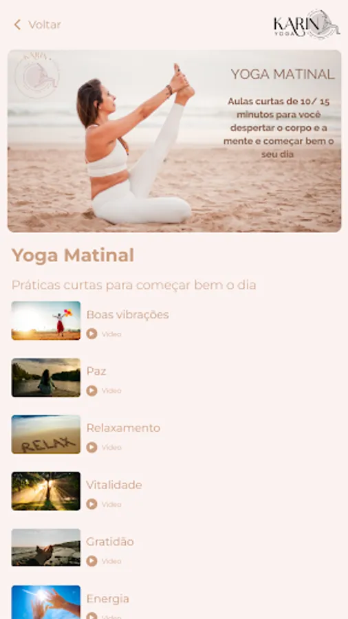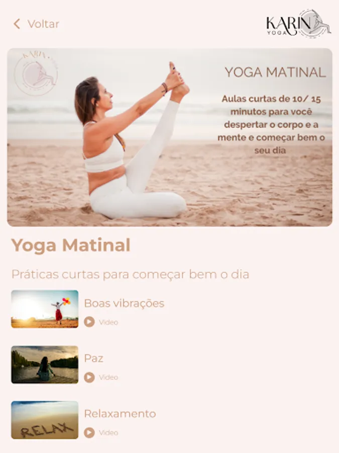 The Karin Yoga app is a complete experience with a wide range of classes carefully crafted to suit your needs and skill levels.