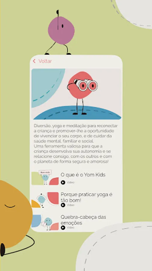Here we are going to help the child: carry out important movements to keep the body healthy and in a good mood for daily activities; recognize and manage emotions such as fear, anger, sadness and deal with feelings such as jealousy, longing and insecurity; let's help the child fight stress and anxiety; let's help the child to develop calm, focus and concentration; to have strength and resilience in the face of challenges; develop autonomy and self-esteem; valuing diversity and multiple knowledge; sleep well, learn well and grow well!