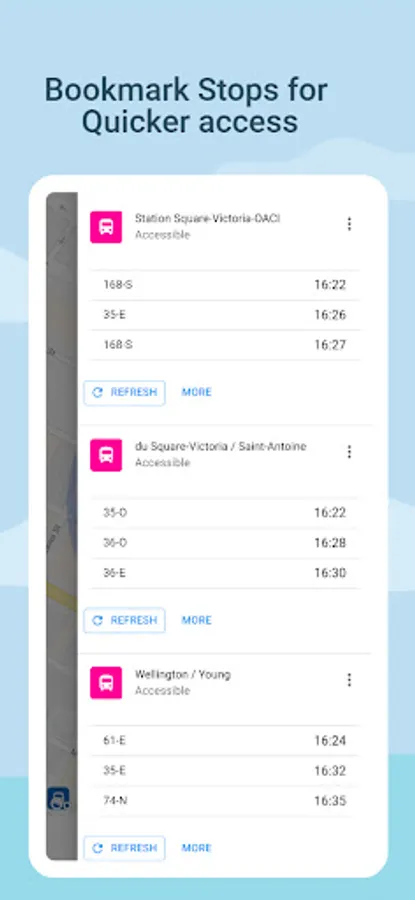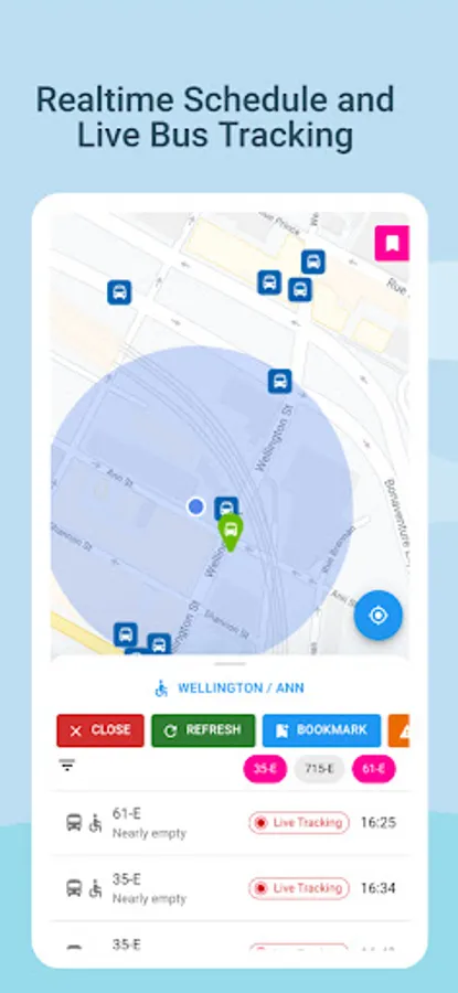 Check out the Bus Stops nearby, get a quick idea about all the bus lines on those stations with the schedules of the next buses, and track the buses' location in real-time, including their crowdedness level!