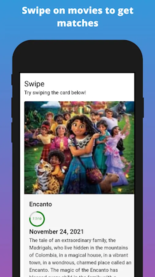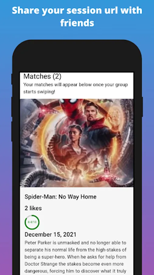 Matches will be displayed in real-time as soon as more than one person liked the same movie!