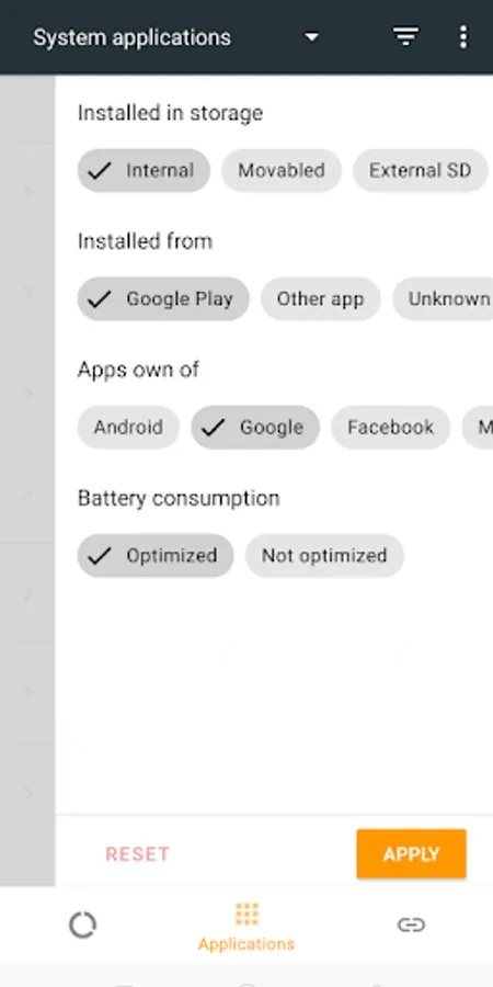 Among other basic functions, it offers us the possibility to perform quick searches of applications, to show a list grouped by: