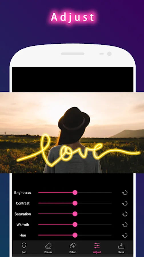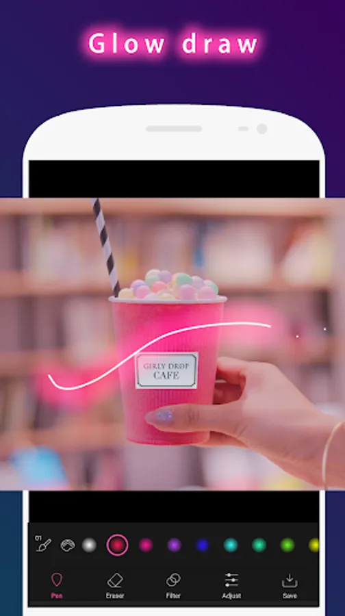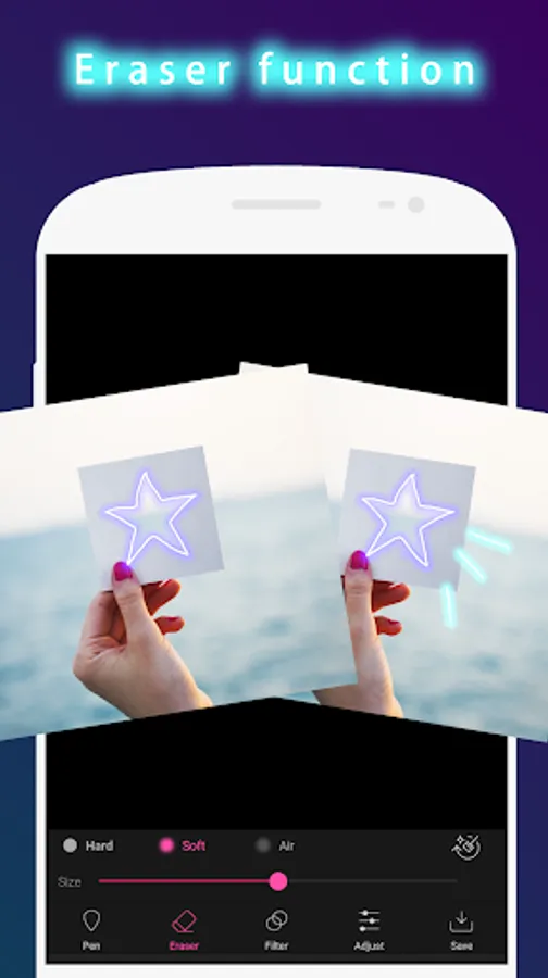 3, You can draw the effect like a neon sign by touching it with a finger.