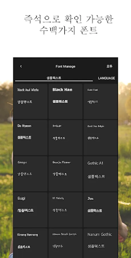 Supports various free Hangul fonts, and freely distributable and commercially available fonts.