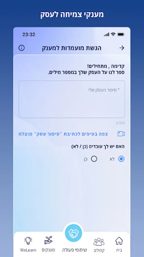 Providing grants in the amount of up to NIS 30,000 to members of the business community who meet the criteria, for the benefit of business growth and for a variety of essential uses such as: marketing and advertising consulting, equipment purchase, hiring and more...
