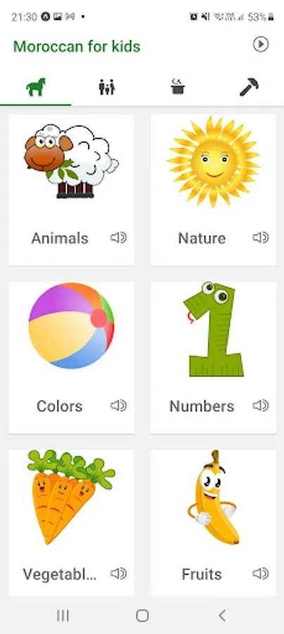 Learn Moroccan will help you to learn basic words. Click on an image and listen! Perfect for beginners and small children! All words are pronounced in a Moroccan Arabic Dialect.