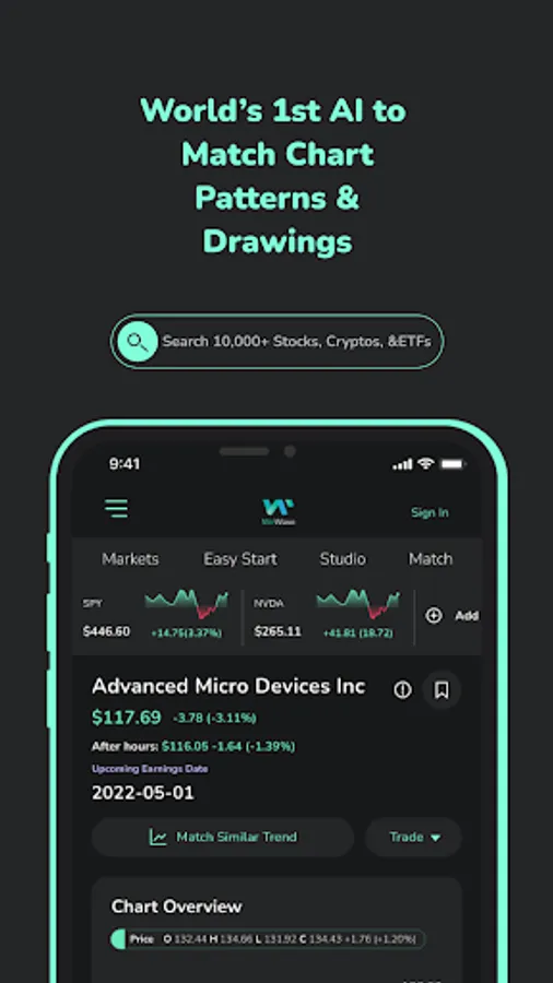 1. Draw, search, and match technical patterns for any ticker against the entire US stock market and all cryptocurrencies.