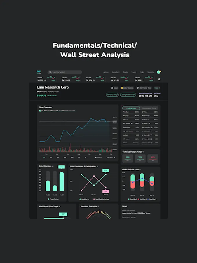 4. Unlock advanced analyses into fundamentals/technicals as well as insights from social mentions and Wall Street for 10,000+ tickers.