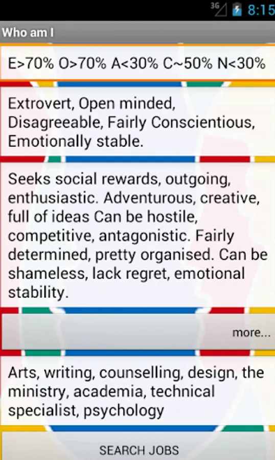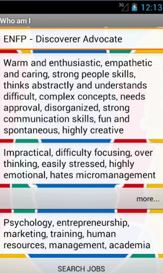 After the test view the short profile and profession suggestions. Great if you are a student or considering a career move.