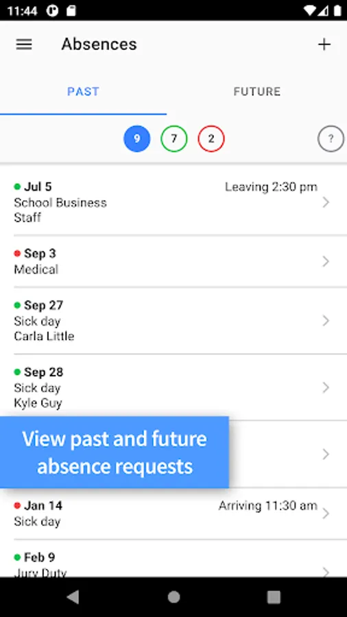 • View their past and future absences.