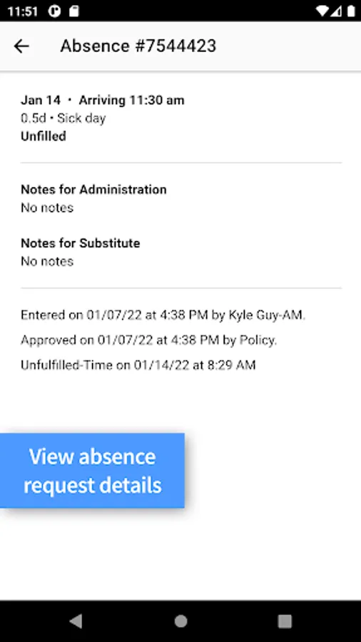 • View details for a specific absence.