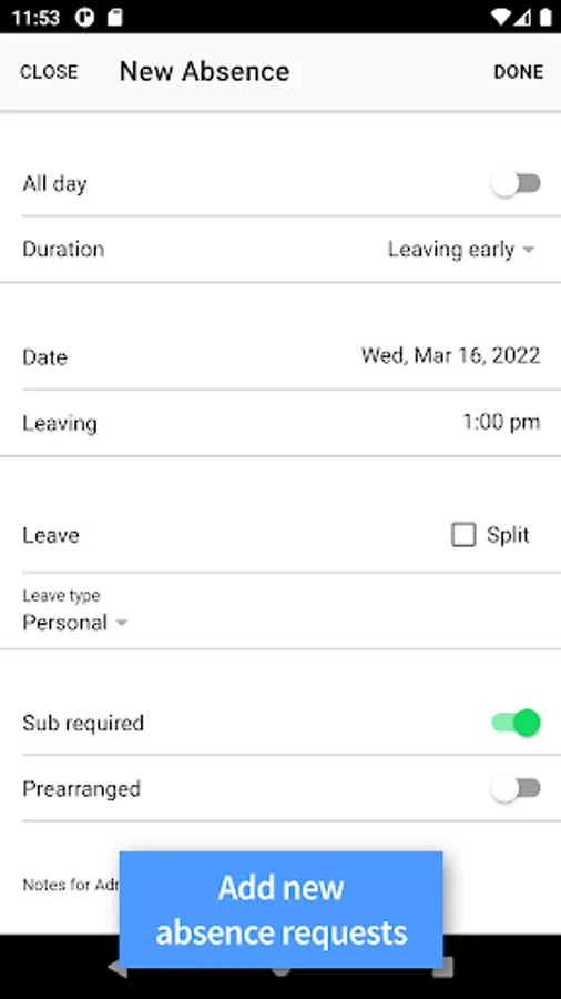 • Create new absence.