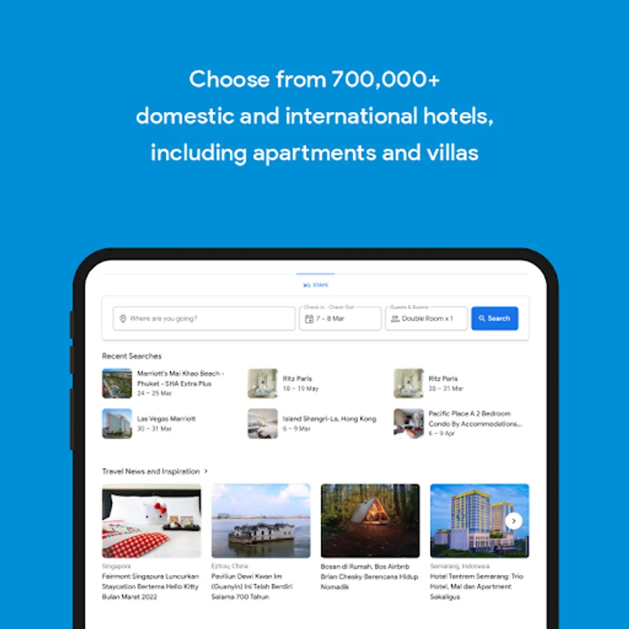 Choose from 700,000+ domestic and international hotels, including apartments and villas.